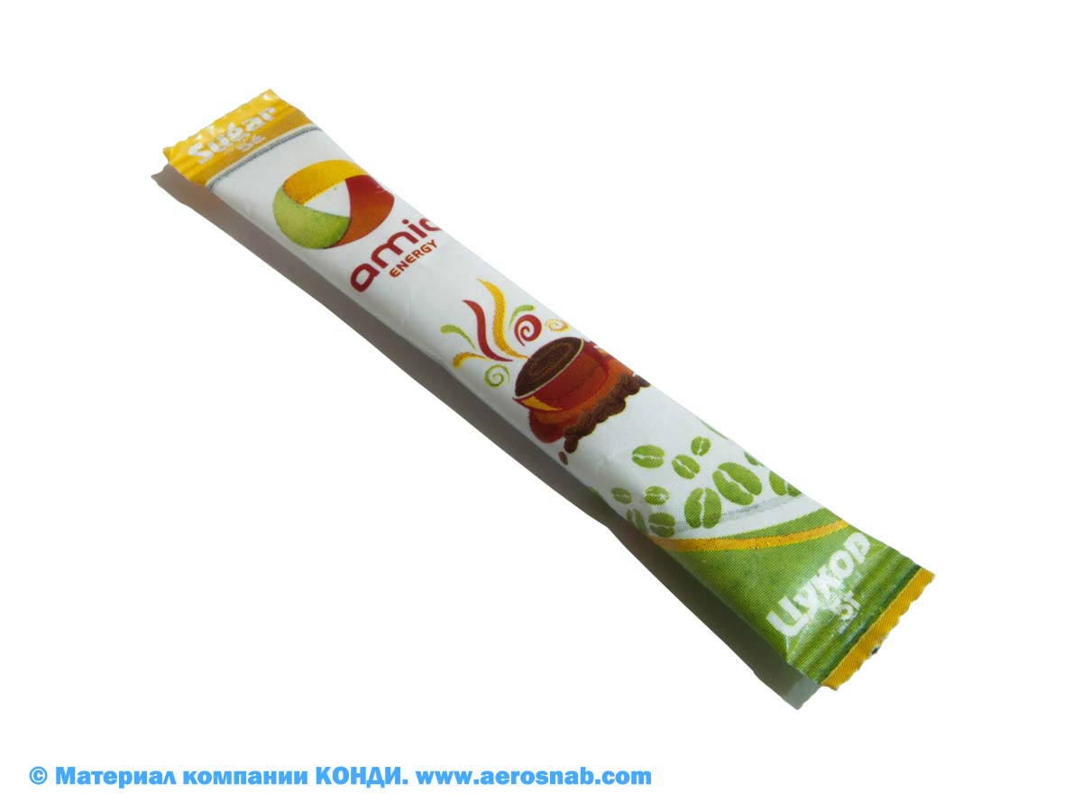 Ми продаємо геніальне п'ятиграмове творіння Бенджаміна Ейзенштадта, чия компанія з початку 20 століття пакувала в одноразові пакетики не тільки цукор, а й сіль, перець, кетчуп і джеми.